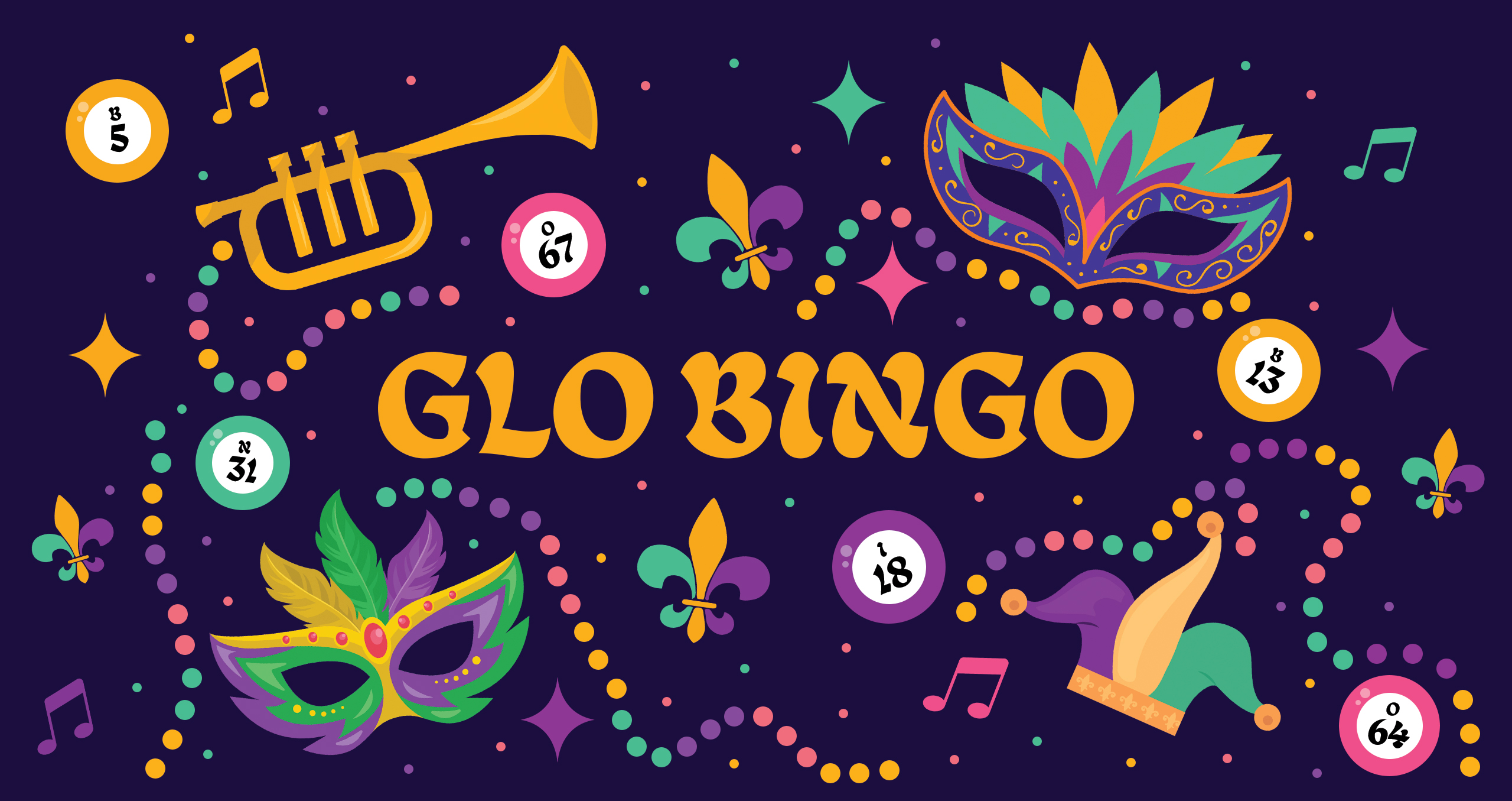 This year’s Glo Bingo will be Mardi Gras–themed! Come dressed in your best festive attire—think beads, masks, and vibrant colors. Show off your style for a chance to win our Best Dressed Contest!